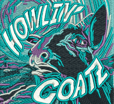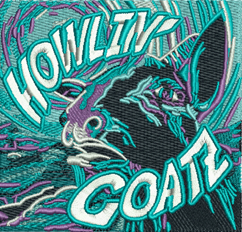 Bold and energetic, this embroidery features a fierce goat design with electric colors great for sports teams, bands, or streetwear brands that want to stand out.